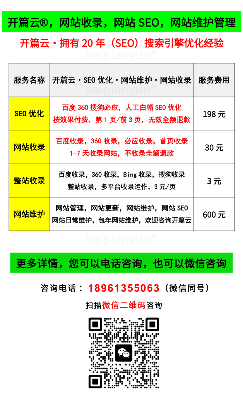 開篇云SEO優化:SEO搜索引擎優化提升關鍵詞排名! 咨詢熱線:18961355063